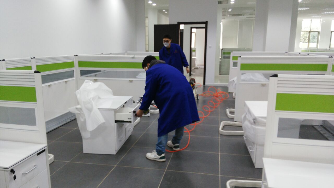 根據實地考察該單位裝修特點,結合先前檢測的數據報告,我們為其做了詳細的施工治理方案,并報其公司領導審核,經刪選同意并認可我公司的施工治理方案。經過施工治理——復檢修補——驗收審核等工序,該工程于近日全部完工。下圖為工程施工現場: