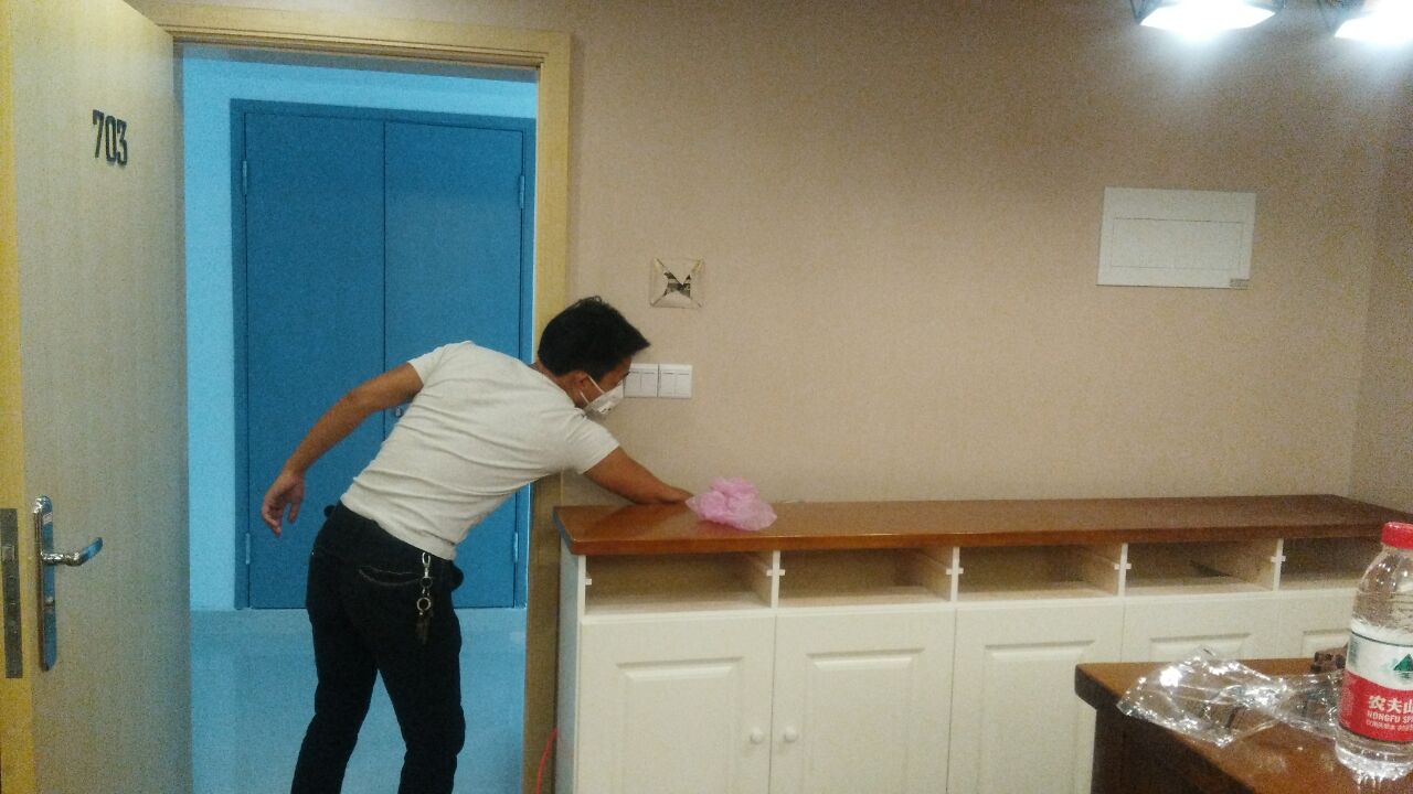 治理方案及施工:公司針對(duì)其房屋結(jié)構(gòu)特點(diǎn)及污染情況,我公司技術(shù)及施工人員采用專項(xiàng)治的施工方案,針對(duì)其墻體立面(墻紙)、沙發(fā)、等污染源表面使用我公司自主研發(fā)的利純納米光觸媒進(jìn)行甲醛清除,采用高壓霧化噴涂的方法,最大限度消除室內(nèi)的甲醛污染,對(duì)于重新刷漆的家具、門、書架、衣柜等采用甲醛清除劑進(jìn)行處理,對(duì)于床底部位則使用生物酶異味清除劑,針對(duì)不同污染物,做全面治理,治理后的室內(nèi)環(huán)境達(dá)到國家規(guī)定的室內(nèi)空氣質(zhì)量指標(biāo)范圍內(nèi),業(yè)主對(duì)我公司的治理給予充分肯定。下面為施工現(xiàn)場照片: