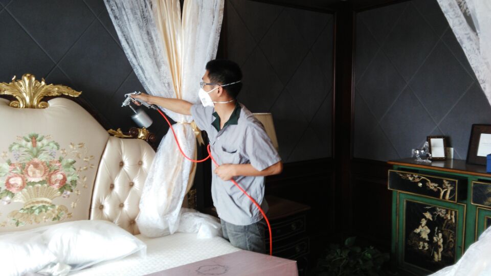 治理方案及施工:針對其房屋結構特點、污染情況,我公司技術及施工人員采用了非常精密的施工方案,針對其墻面、床墊、沙發、窗簾、布藝家具使用我公司研發的利純光觸媒進行甲醛清除,這些地方光照量較充足,便于光觸媒對甲醛的分解,且光觸媒性溫和,不會對這些產品造成危害,對于刷漆的家具、書桌、衣柜、木門等采用甲醛清除劑進行處理,甲醛清除劑是我公司針對家具中甲醛特別研發的產品,對家具中甲醛、苯、等產品效果良好,甲醛對兒童、老人的危害最為嚴重,老人因為抵抗力差,而兒童卻是因為身體防御系統不夠健全,且呼吸頻率比成人高,所以我們針對兒童房做了重點處理,對業主家的兒童房做重點處理,針對不同污染物,做分別處理。為業主清理甲醛,還業主一個安全,健康的生活環境是我們全體工作的責任,下面為施工現場照片: