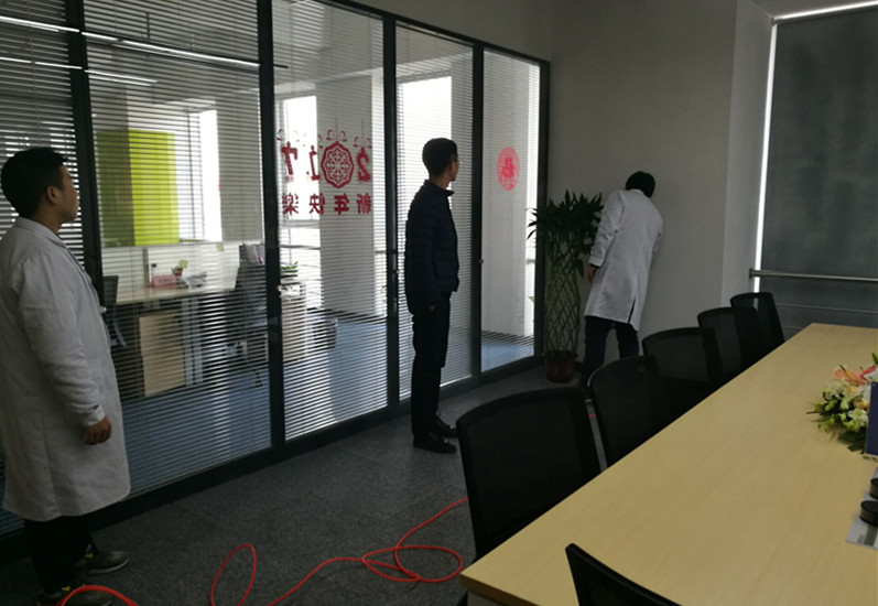 大發(fā)地產(chǎn)(寧波凱旸置業(yè))全新裝修,裝修完工時(shí)間短,另外辦公家具為全新,進(jìn)入室內(nèi)油漆味明顯,公司員工對(duì)此反應(yīng)強(qiáng)烈,我公司在接受寧波凱暘置業(yè)委托后,派專業(yè)工程師上門查看現(xiàn)場(chǎng),分析污染成因,并未其制定了科學(xué)的室內(nèi)空氣整體凈化治理的施工方案,得到大發(fā)地產(chǎn)公司領(lǐng)導(dǎo)的認(rèn)可后,我公司派出治理經(jīng)驗(yàn)豐富的工程師和施工人員對(duì)室內(nèi)辦公環(huán)境進(jìn)行全面凈化,針對(duì)墻壁涂料、地毯以及辦公家具等污染源,公司具有針對(duì)性利用納米光觸媒、甲醛清除、苯清除劑等分別進(jìn)行處理,施工是采用高壓霧化的狀態(tài)下進(jìn)行噴涂,讓甲醛、苯系物和TVOC的全面無死角得到清除。